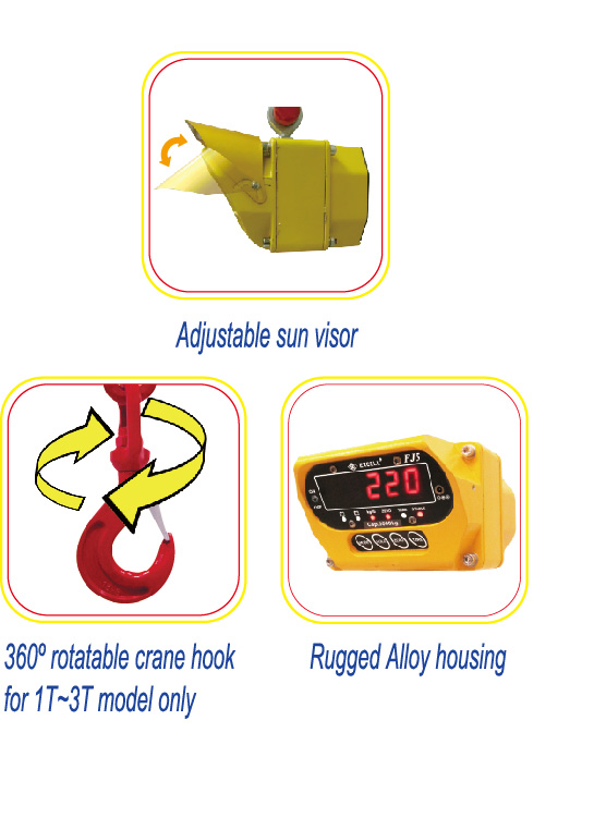 • Móc treo có thể xoay 360 độ, duy trì sự cân bằng trọng lượng của vật cân, duy trì độ chính xác cao và độ an toàn cao