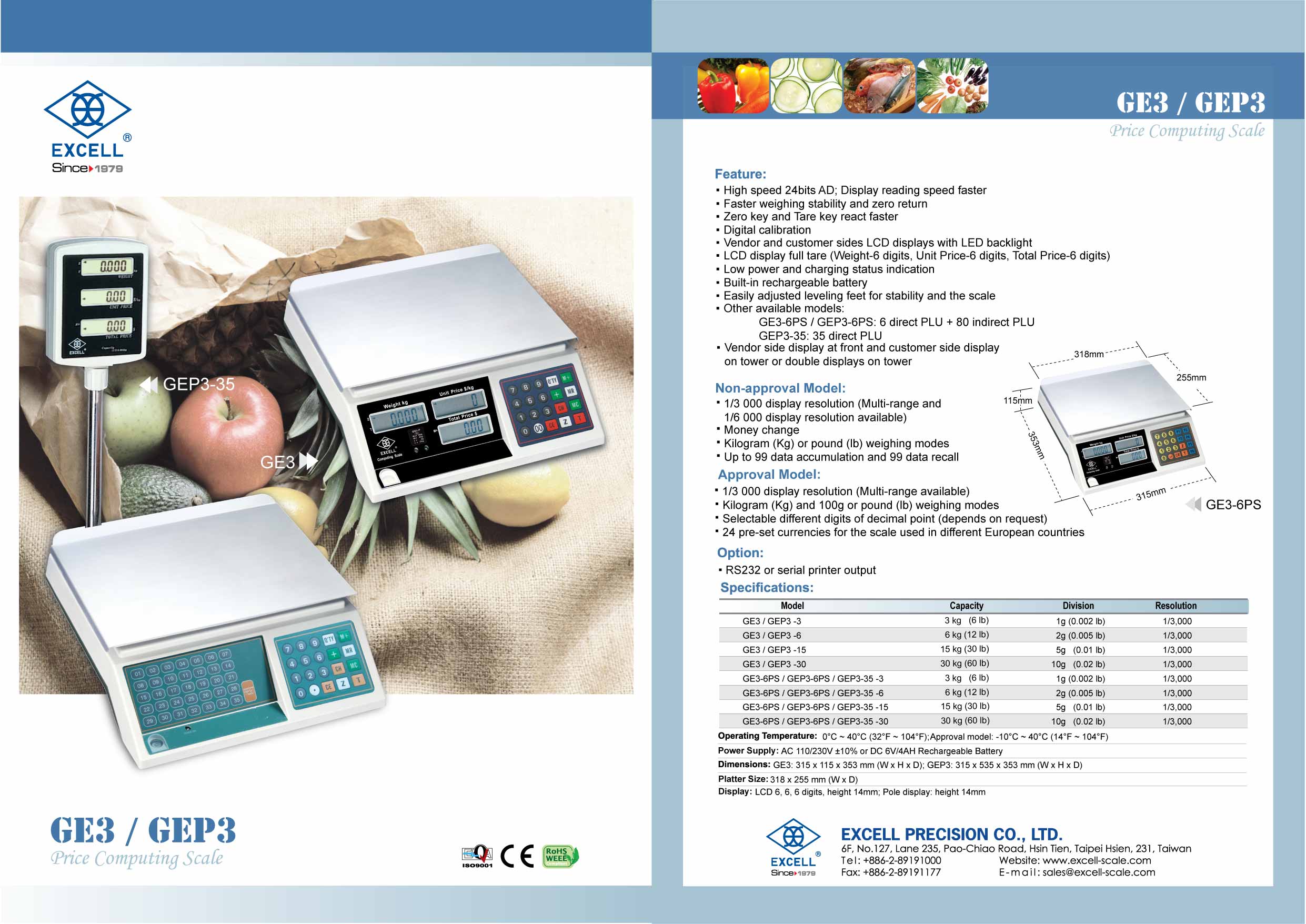 ‧ LCD display full tare (Weight-6 digits, Unit Price-6 digits, Total Price-6 digits)